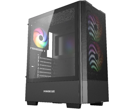 Корпус Powercase Mistral AY3B ARGB (CMAYB-A3), Tempered Glass, 2x 140mm +1x 120mm ARGB Fans, чёрный, ATX