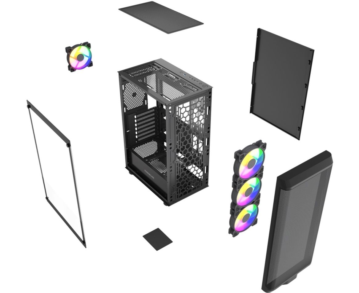 Корпус Powercase Mistral EA22 (CMAEA22-L4), Tempered Glass, 4x 120mm FRGB Fan, чёрный, ATX