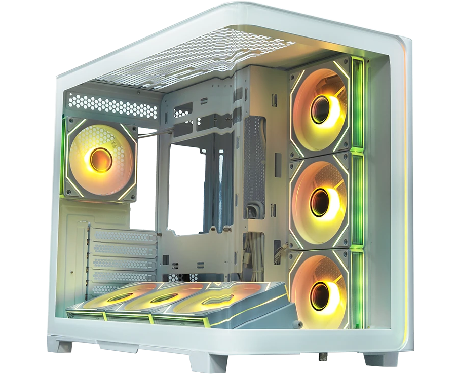 Корпус XASTRA QR600 7ARGB C10-UC (QR600-7FM12A-C10-UC-L-WH) White ATX/Aquarium/Curve Glass/Led Strip/ 7x120mm ARGB PWM FM fans/ Argb+PWM HUB 10port