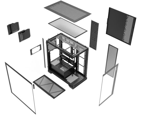 2 x 140 мм на верхней панели, 3 x 120 мм на боковой панели, 140 мм на задней панели, 140 мм на нижней панели