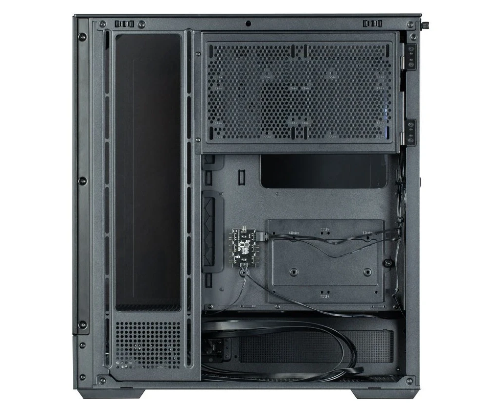 держатель видеокарты в комплекте, установка вентиляторов для охлаждения сокета с обратной стороны сокращает количество мест для HDD/SSD на 2