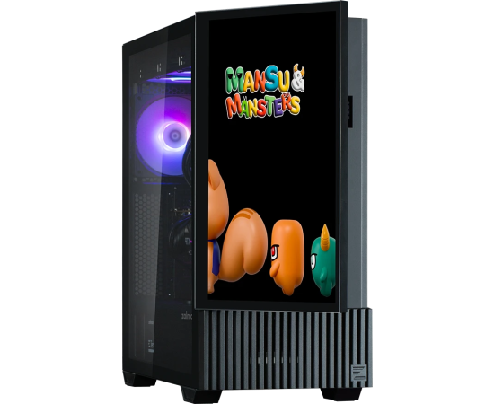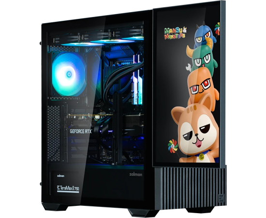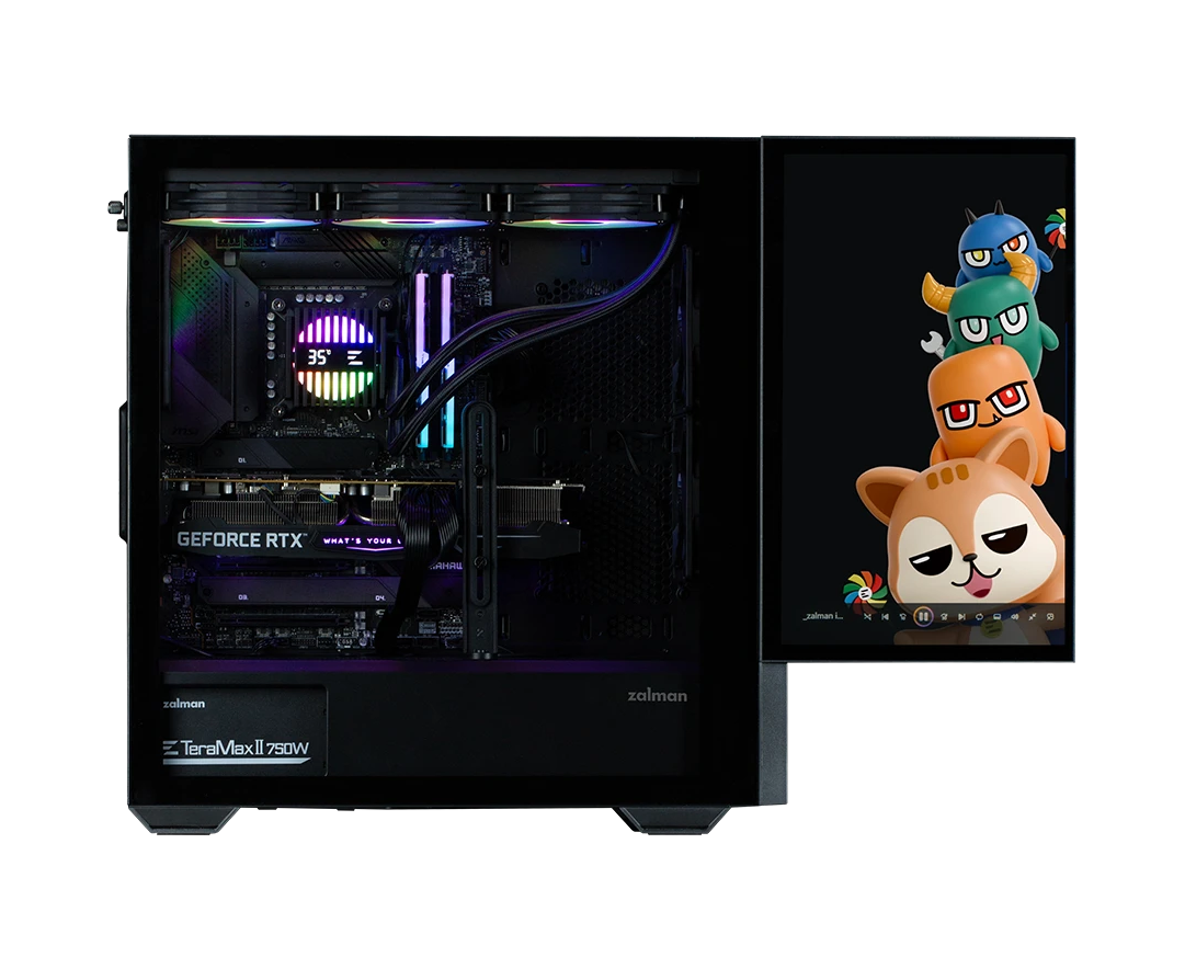 Корпус ZALMAN Z10 DS, ATX, Black, Window, built-in 15.6-inch FHD display, 2x3.5", 2x2.5", 2xUSB3.0, 1xUSB 3.1 Type-C, Front 2x120mm, Rear 1x120mm ARGB