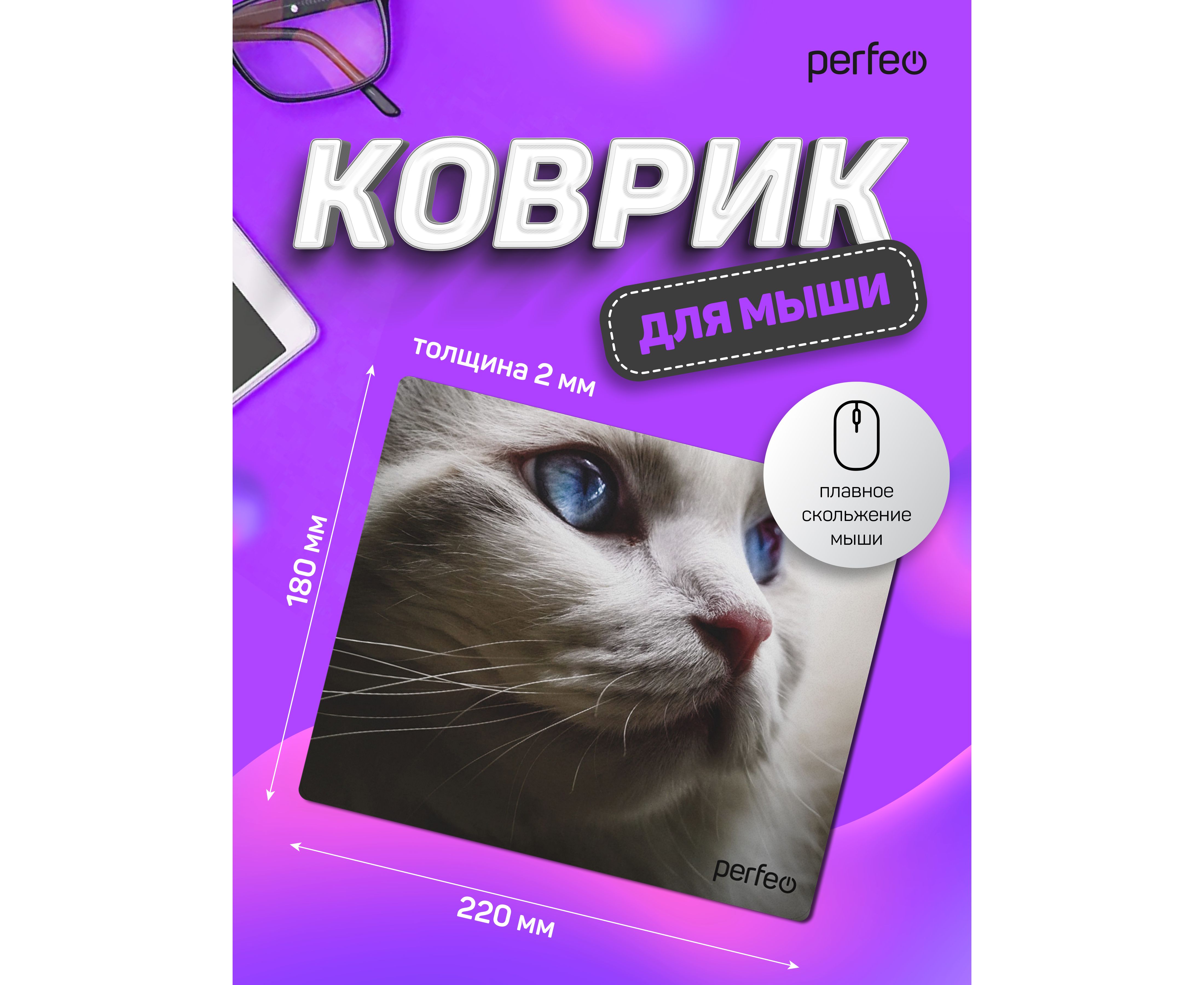 Коврик для компьютерной мыши "Cat", Рис.25 (180*220*2 мм), ткань+резиновое основание