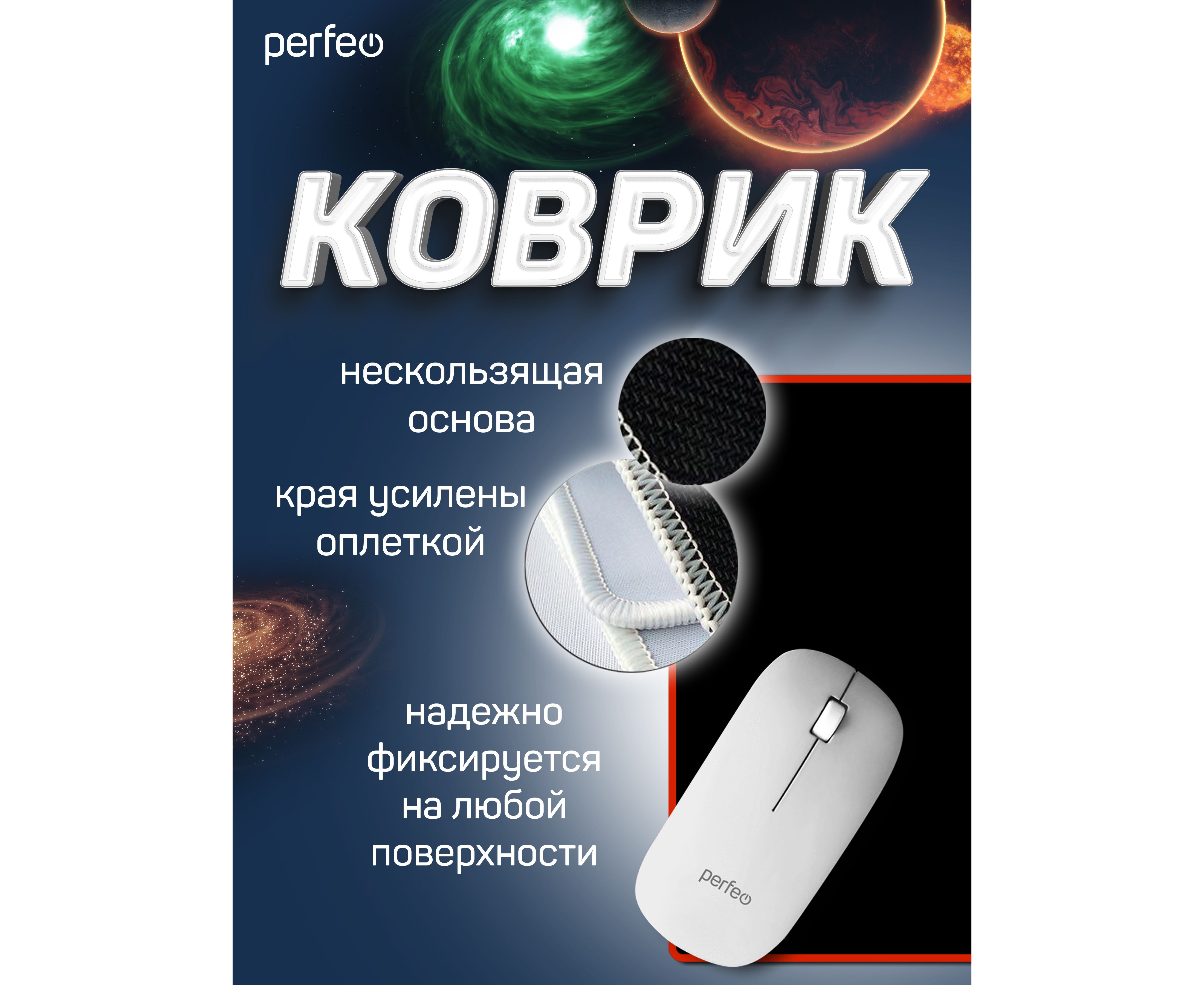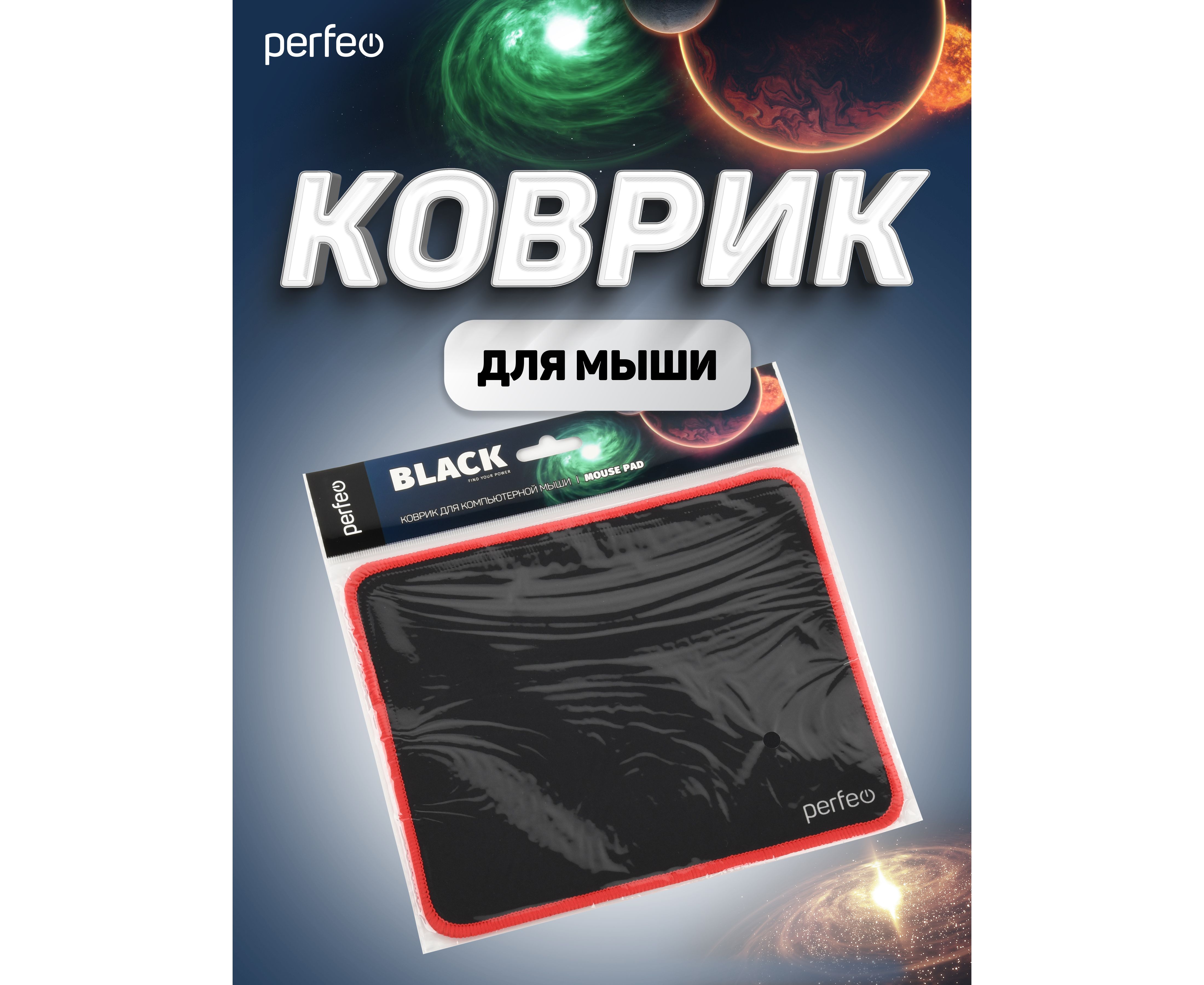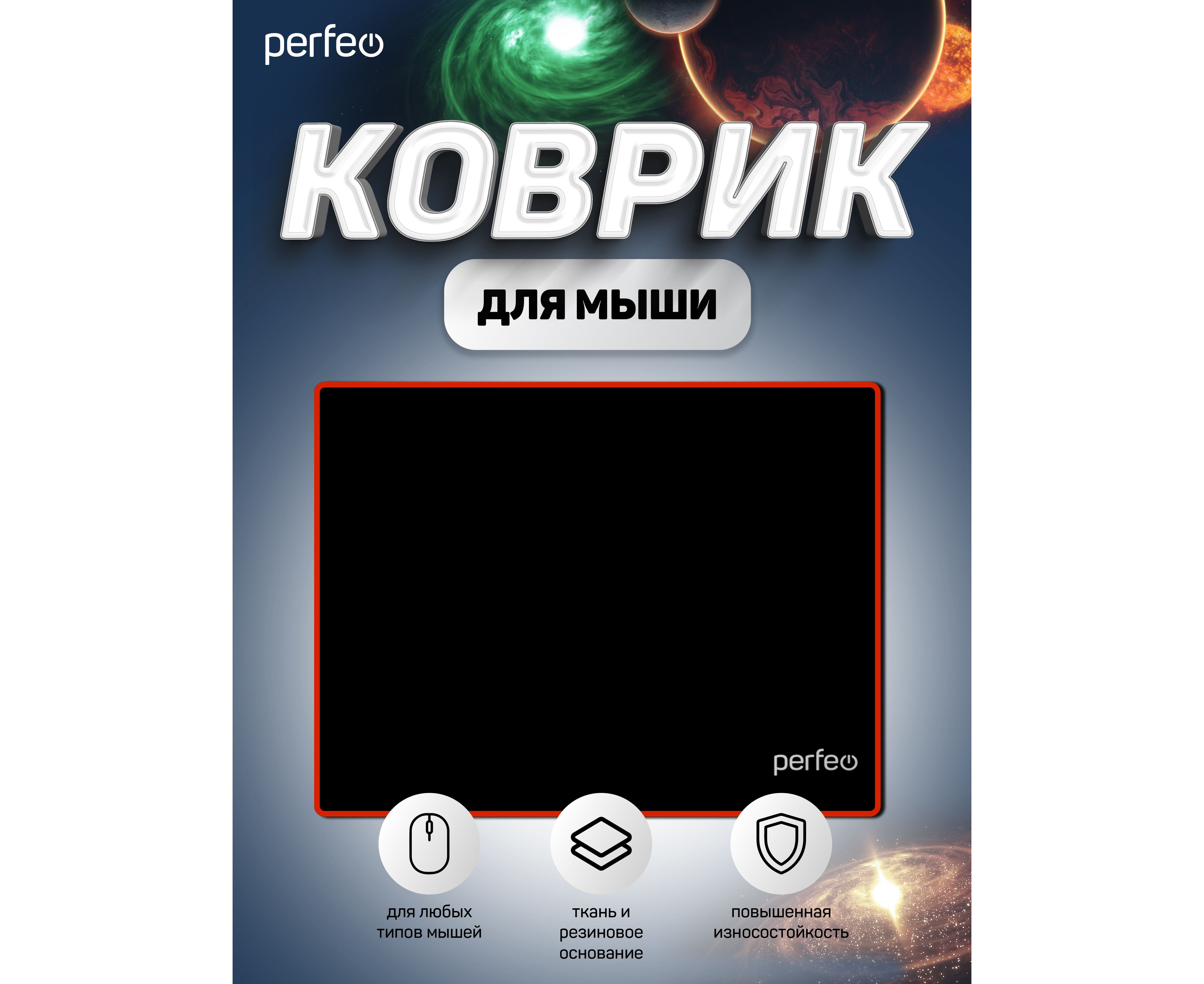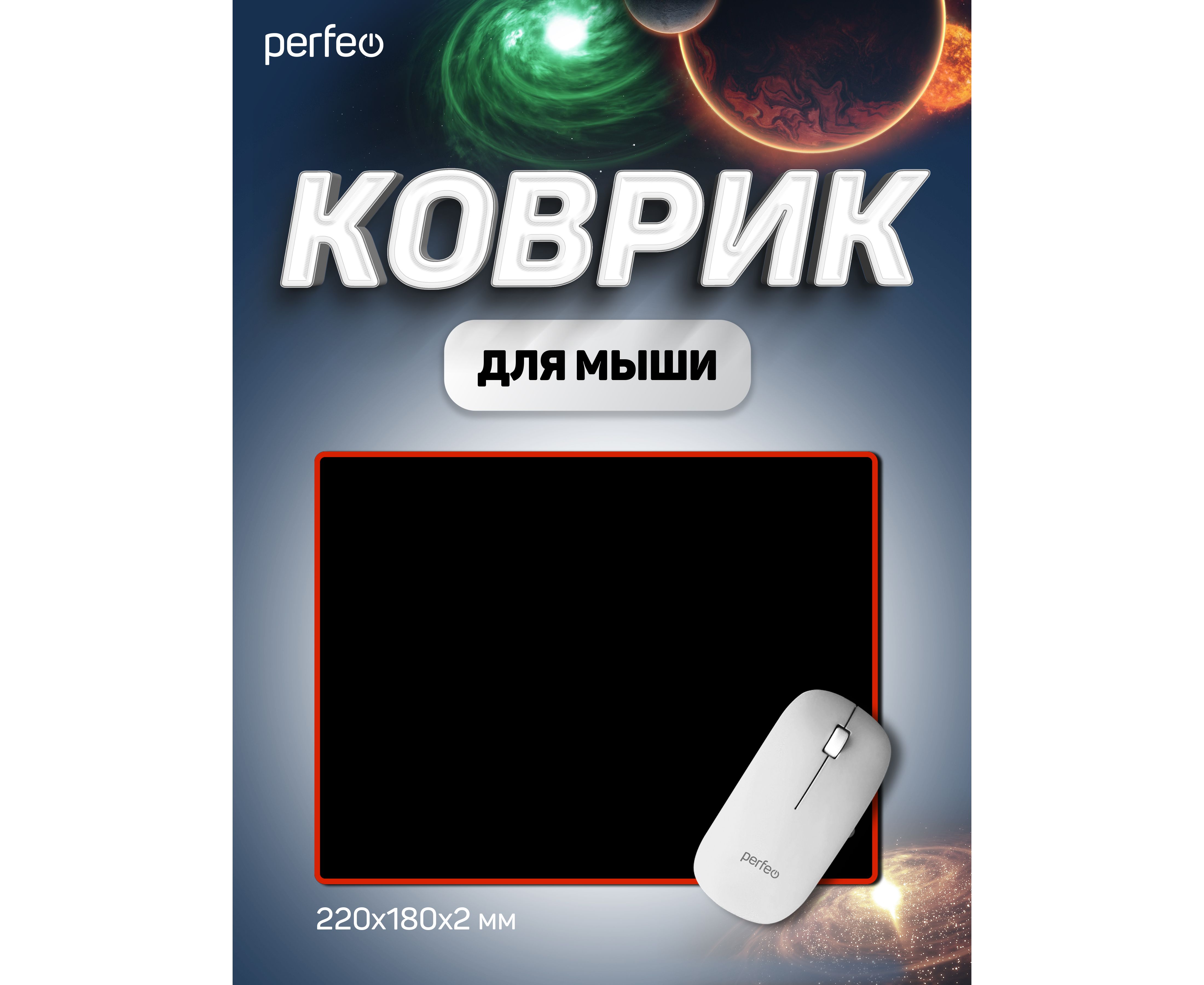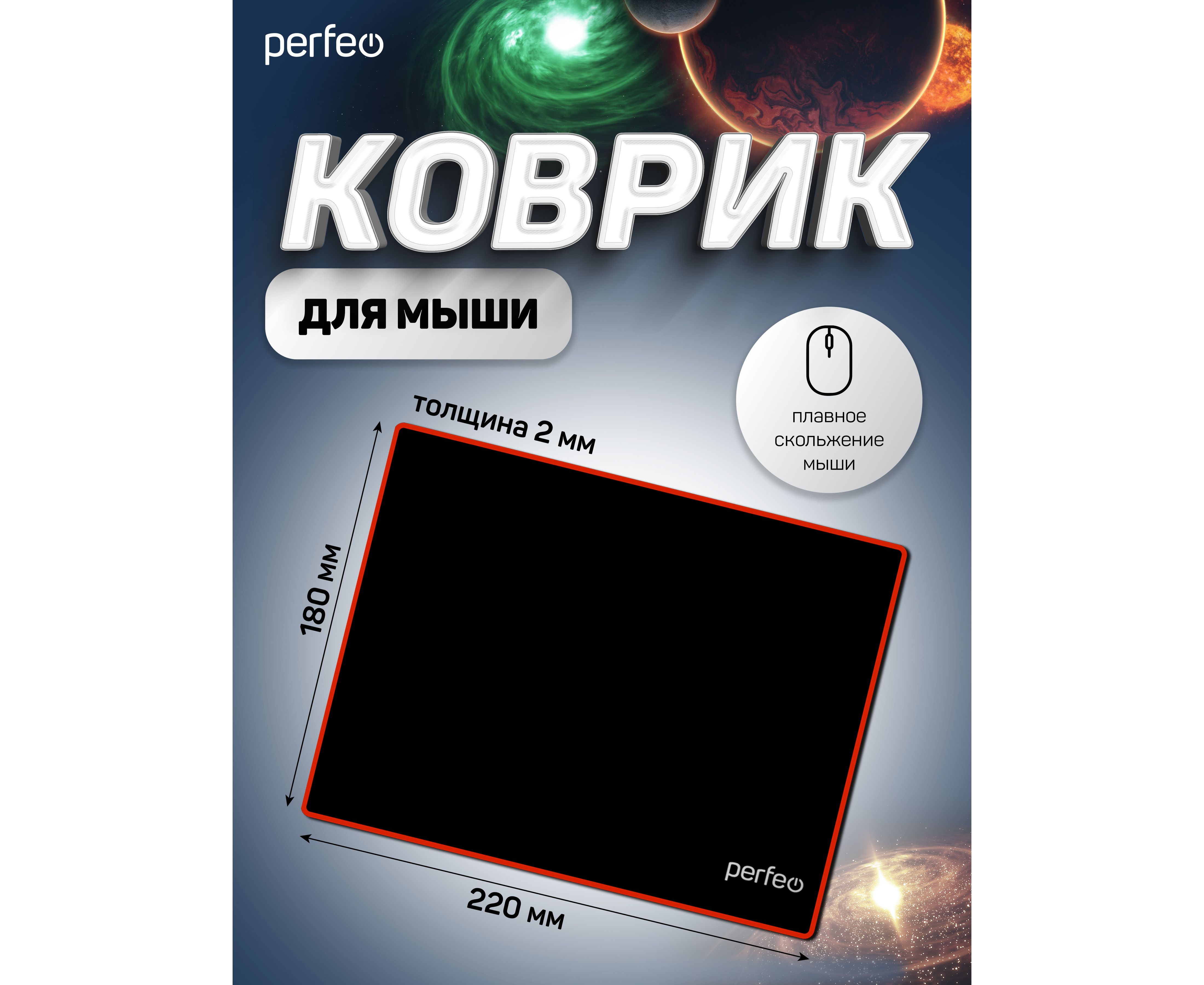 Коврик для компьютерной мыши Perfeo "Black", "Красный", (180*220*2 мм),ткань+резиновое основание