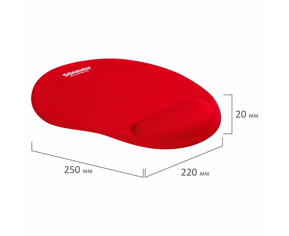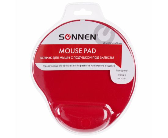 Коврик для мыши Sonnen 513301 полиуретан + лайкра, 250х220х20мм, красный