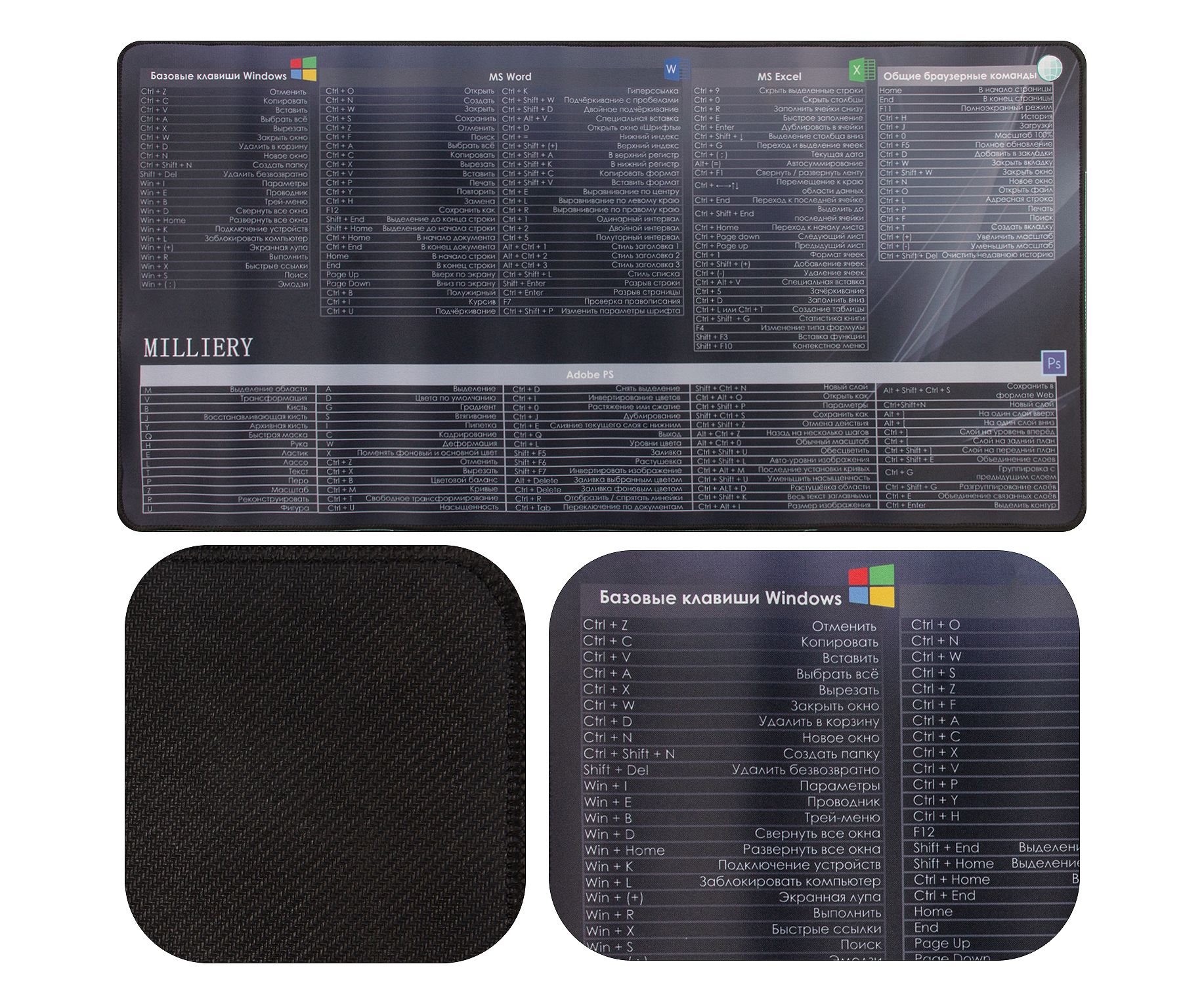 Коврик для мышки "горячие клавиши" (400*800*3mm) (Black)