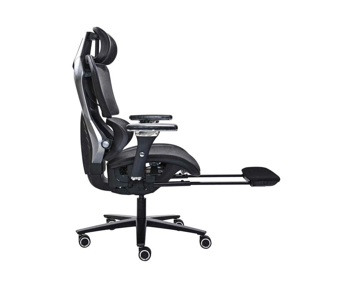 Кресло выполнено из материалов высокого качества. Обивка кресла из сверхпрочной сетки легко чистится и долго сохраняет привлекательный внешний вид. Эргономичный дизайн разработан с заботой о вашем здоровье. Регулируемые подголовник и поясничная поддержка обеспечат оптимальное положение корпуса, способствуя снижению напряжения в области шеи и спины. Регулируемые 4D пластиковые подлокотники позволят с удобством разместиться в кресле. Наличие телескопической подставки для ног не только помогает создать удобное положение для ног, но и способствует улучшению кровообращения, снимая напряжение с мышц и суставов. В основании – надежное металлическое пятилучие и газлифт 4 класса. Максимальная нагрузка – 125 кг.