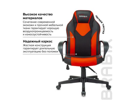 Кресло игровое BRABIX Game GM-017 (532642) экокожа/ткань, черное/красное
