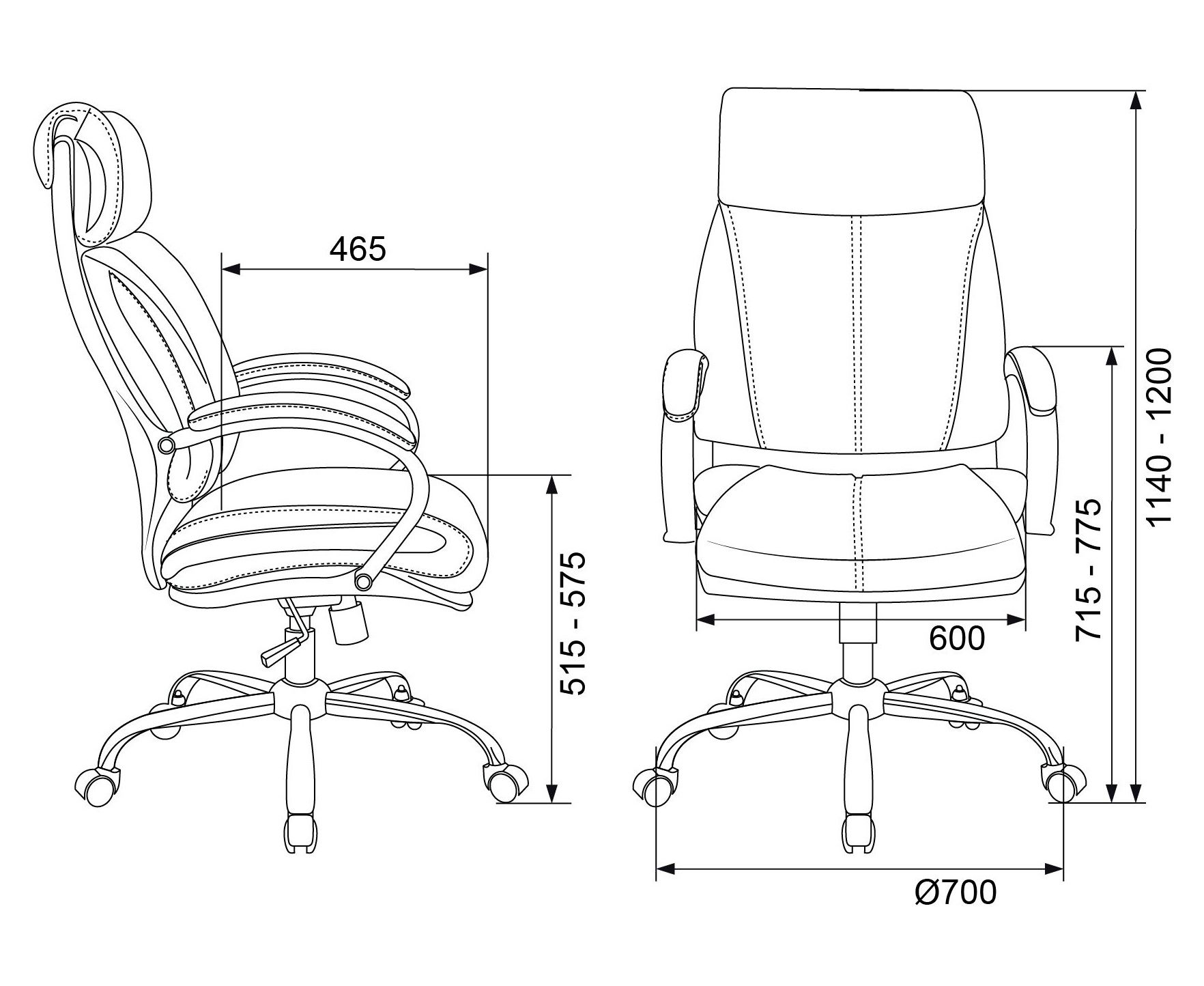 Высота с подлокотниками MIN