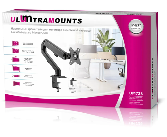 Кронштейн для мониторов Ultramounts UM 728 черный 17"-27" макс.7кг крепление к столешнице поворот и наклон