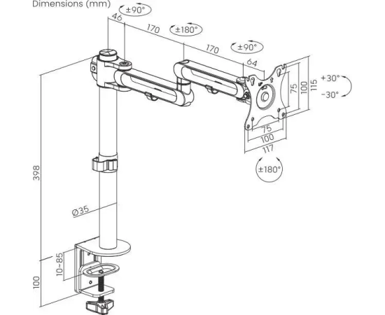 Настольный кронштейн для монитора с системой газ-лифт. Пружинный механизм позволяет легко перемещаться вверх и вниз.