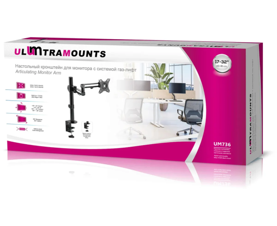 Кронштейн для мониторов Ultramounts UM 736 черный 17"-32" макс.8кг крепление к столешнице поворот и наклон
