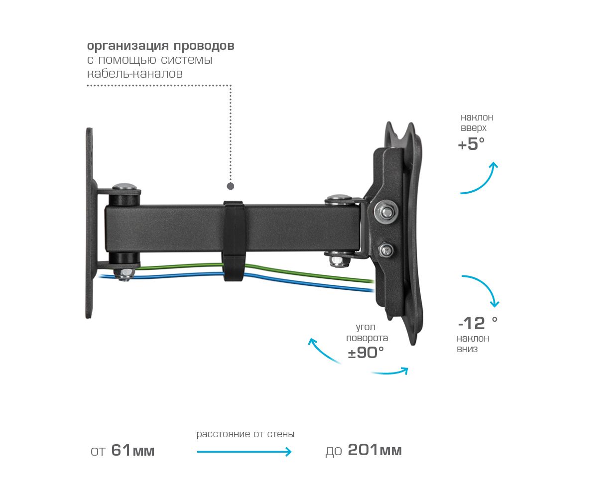 Универсальная система крепления, Легкий монтаж при помощи съемной монтажной пластины, Вращение экрана уникальная возможность вращения экрана на ±5° относительно стены, Надежная стальная конструкция максимальная нагрузка до 25 кг