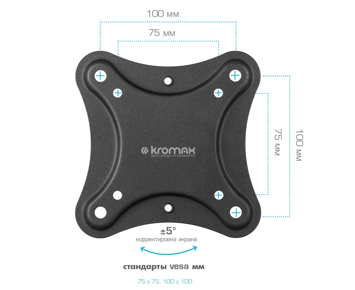 Кронштейн Kromax CORBEL-2 black, 10 шт/уп. Кр. стал. наст. для TV 10"-34", max 25 кг, 4 ст св., нак. +5°-12°,
