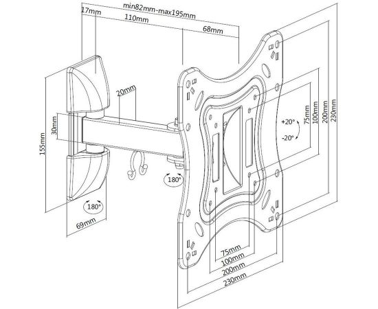 Расстояние от стены/потолка (макс) 19.5 см