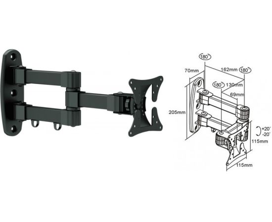 Хороший кронштейн за свою стоимость. Размер компактный. Кронштейн отлично подошёл для телевизора 24 дюйма. Крутится во все стороны, вверх и вниз.