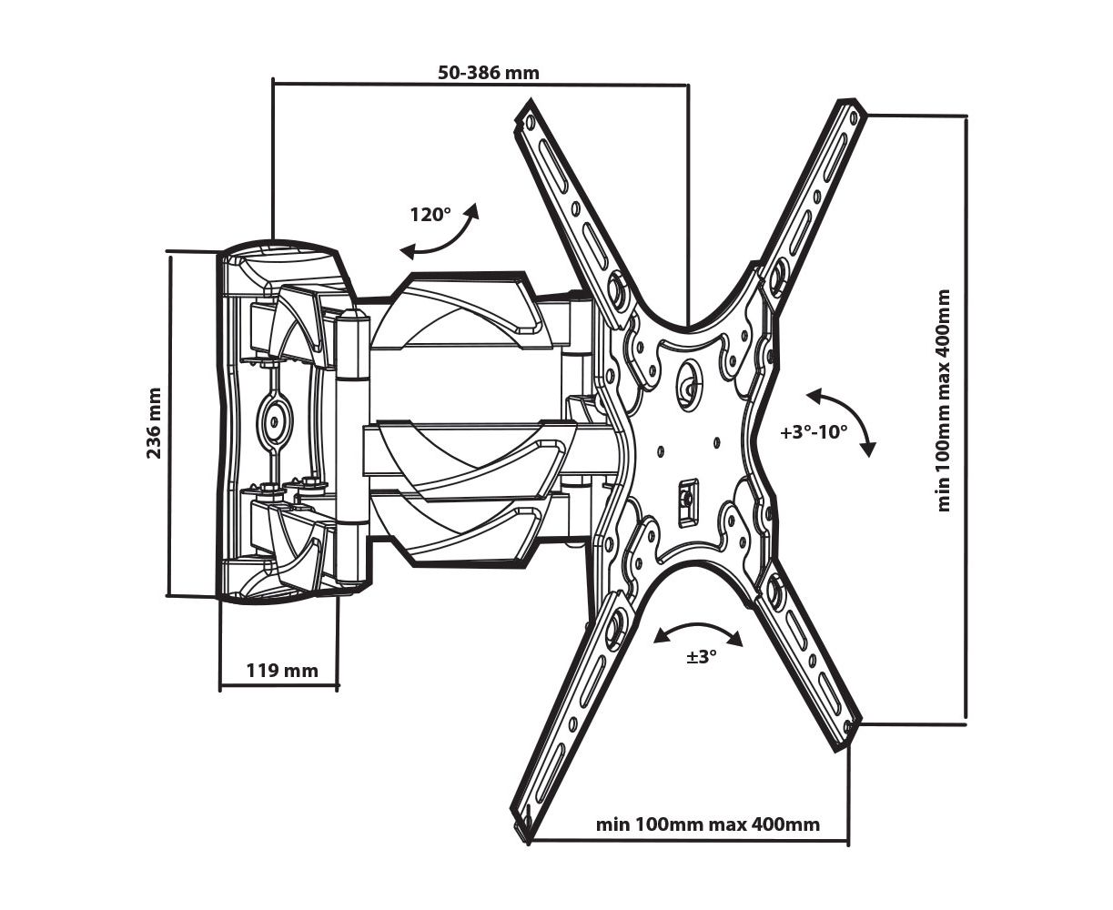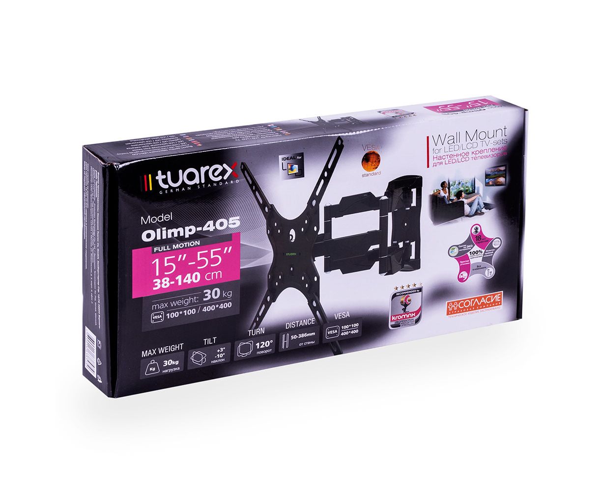 15"-55" Кронштейн Tuarex OLIMP-405 черный Наклонно-поворотный до 30кг