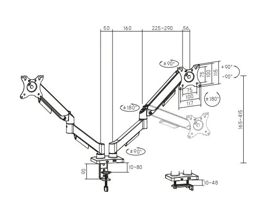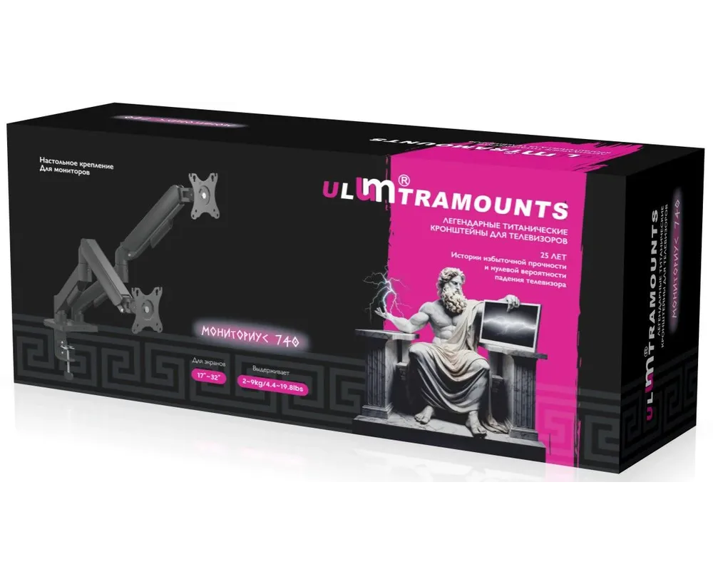 Кронштейн для мониторов Ultramounts UM740 черный 17"-32" макс.9кг крепление к столешнице поворот и наклон