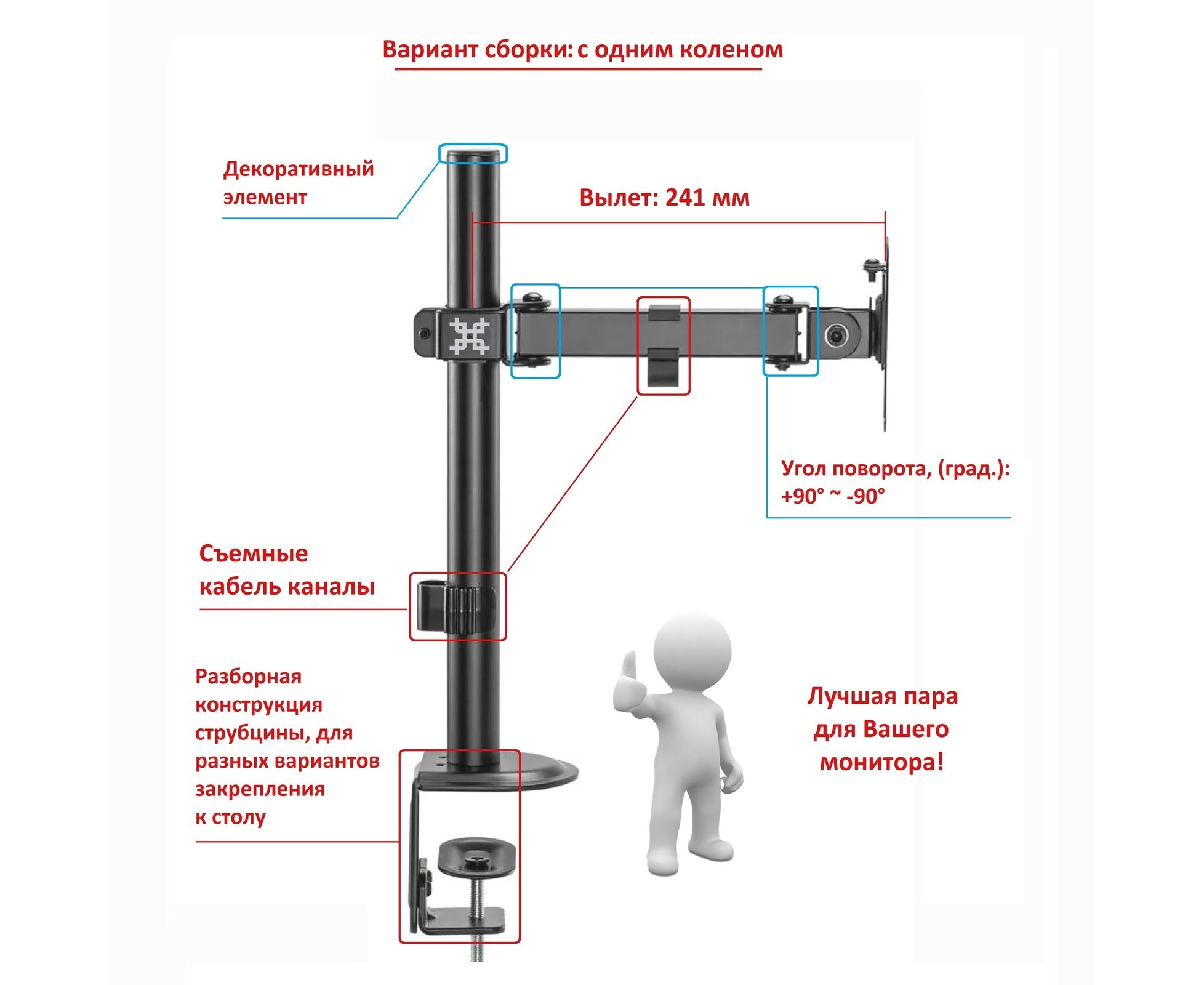 Тип кронштейна: Настольный со струбциной для монитора