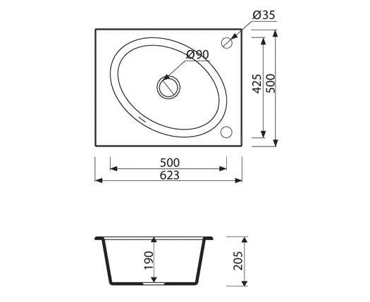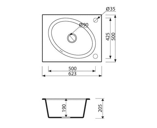 Размеры мойки: 623х500х190 мм