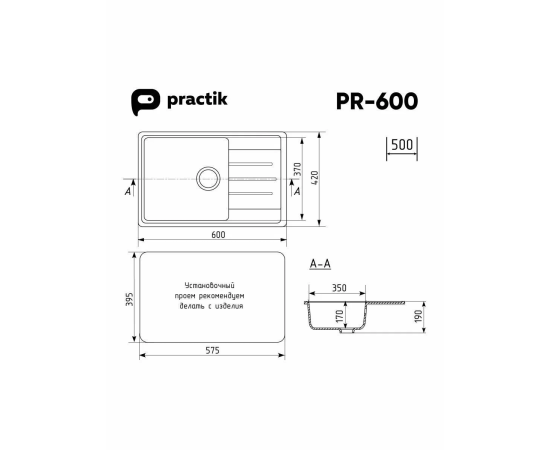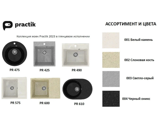 Кухонная мойка Practik PR-M 600-001 Белый камень
