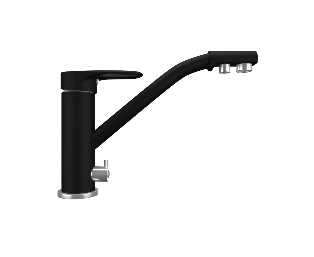 Тип смесителя управление Смеситель кухонный двухрычажный с дополнительным изливом для фильтрованной воды
