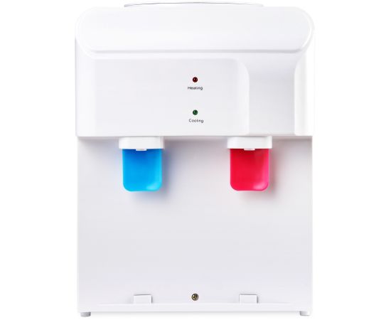 Данный кулер создан для людей, которые привыкли ценить свободное пространство, лаконичность и функциональность. На лицевой панели прибора расположены два пуш-крана. Один отвечает за тёплую воду, второй – за холодную. Индикации прибор также имеет необходимый минимум, для каждого крана работает своя лампочка, показывающая нагрев или охлаждение связанной с ним ёмкости.
