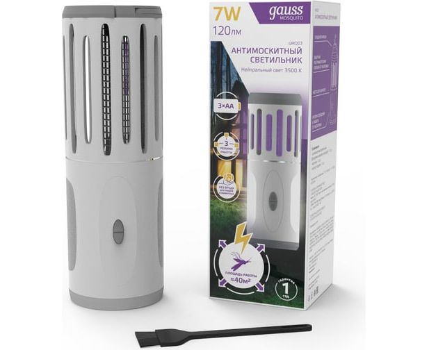 Антимоскитный светильник GAUSS Mosquito, 7 Вт, 3 AA, 1/40 GMQ03 – световое устройство, которое защищает от летающих насекомых как внутри помещения, так и снаружи, например, в беседке, террасе или туристической палатке.