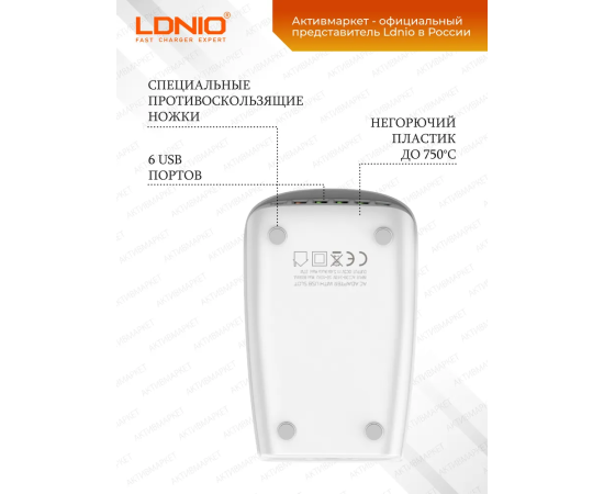 LDNIO A6573C/ Зарядная станция на 6 USB: USB Type-C + 5 USB Type-A/ Выход: 3.3-20V, max 65W/ Белый, (Арт. LD_C3467)