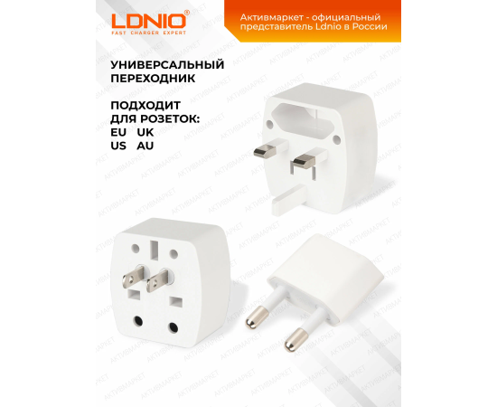 Адаптер-переходник LDNIO Z4 для розеток/ EU_UK_US_AU/ Белый, (Арт. LD_B4401)