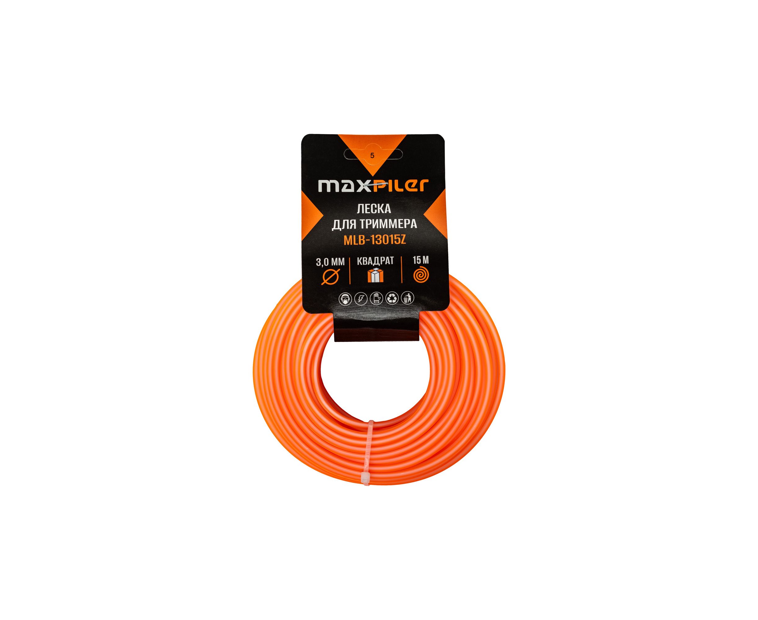 Леска для триммера Maxpiler MLB-13015Z 3.0MM*15M, квадрат (бело-оранжевая) картон