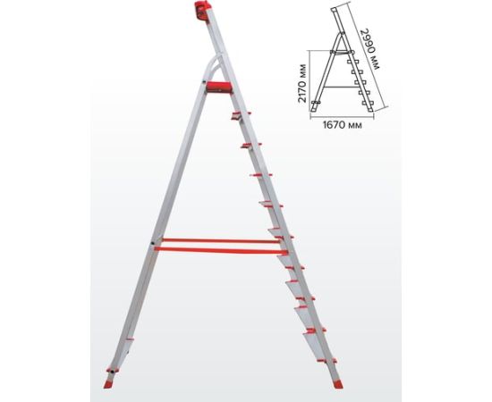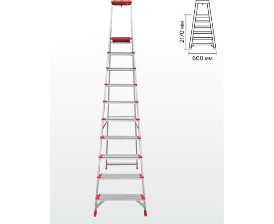 Профессиональная стремянка Новая Высота NV3118, 1x10 ступеней 130 мм, органайзер 3118110 предназначена для интенсивного использования.