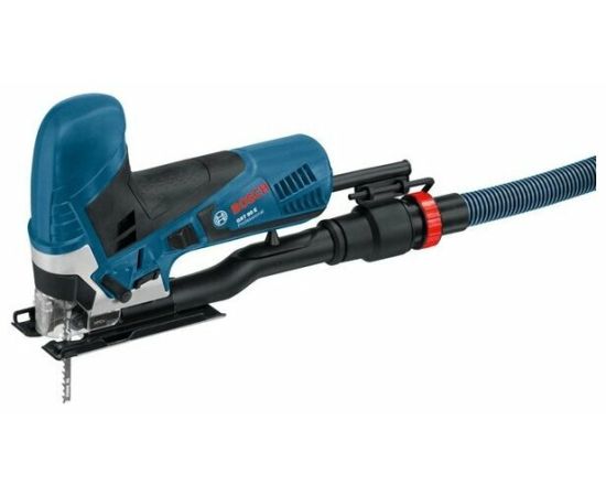быстрозажимное крепление пилки, возможность подключения пылесоса, защитный щиток, обрезиненная рукоятка, сдув опилок