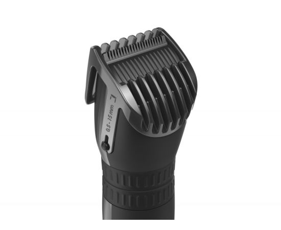 GC562 Black Titanium — беспроводная машинка для стрижки волос со съемным лезвием из нержавеющей стали, покрытым титаном, обеспечивающим точную стрижку. В комплект входит 2 сдвижные насадки, благодаря которым можно отрегулировать длину стрижки от 0.5 до 15 мм и от 15.5 до 30 мм (шаг 0.5 мм). Высота среза без гребня составляет всего 0.5 мм.