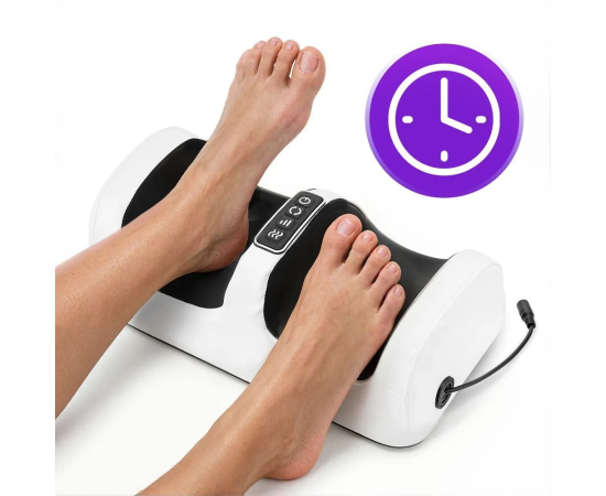Массажёр сочетает в себе функции роликового массажа и нагрева, чтобы обеспечить максимальный комфорт и расслабление мышцам ног.