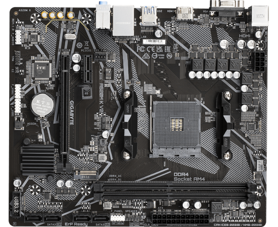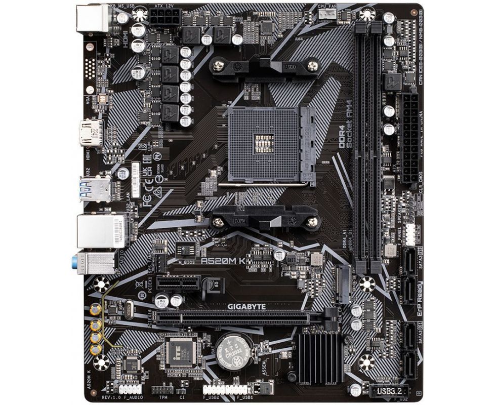 MB sAM4 Gigabyte A520M K V2, Socket AM4, AMD A520, 2xDDR4-3200, D-SUB+HDMI, 1xPCI-Ex16, 1xPCI-Ex1, 4xSATA3(RAID 0/1/10), 1xM.2, 8 Ch Audio, GLan, (2+4)xUSB2.0, (4+2)xU