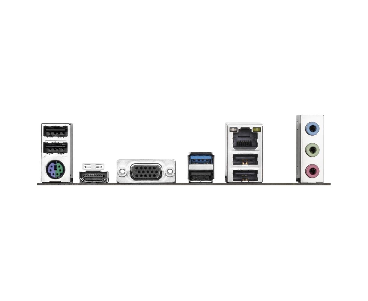 PS/2, 5 x USB 2.0, USB 3.2 Gen1, VGA, HDMI, RJ-45