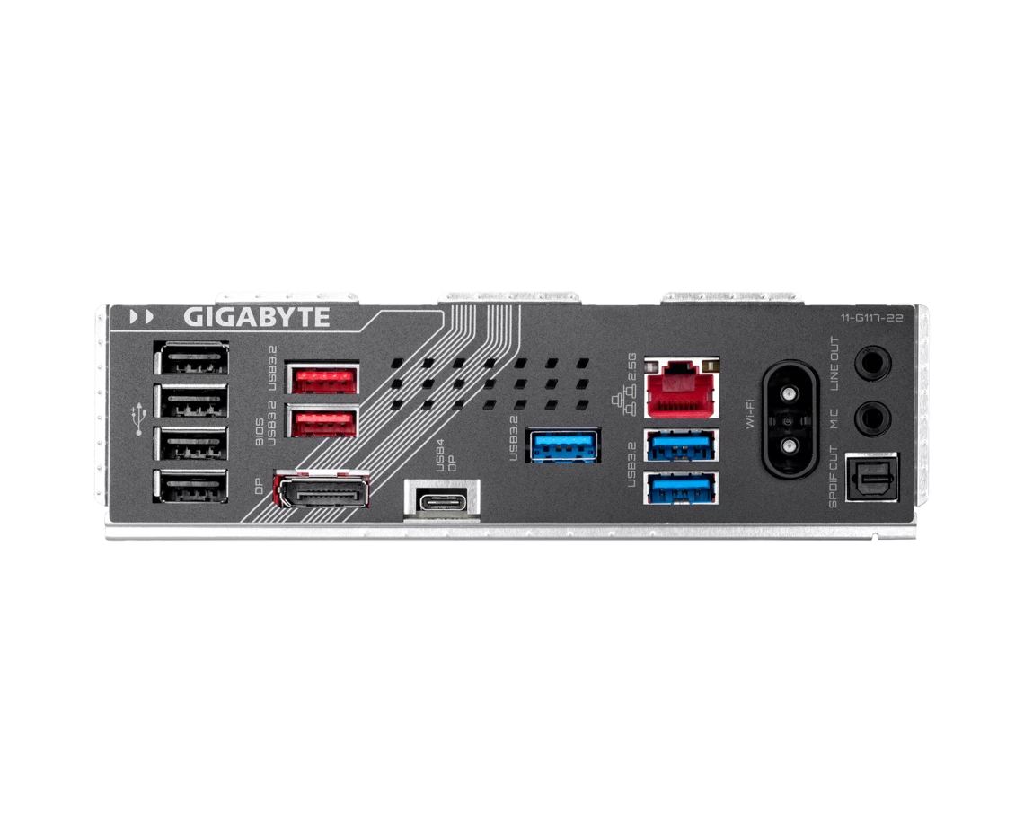 4 x USB 2.0, 3 x USB 3.2 Gen1, 2 x USB 3.2 Gen2, USB 4 Type-C, DisplayPort, RJ-45, S/PDIF (оптический)