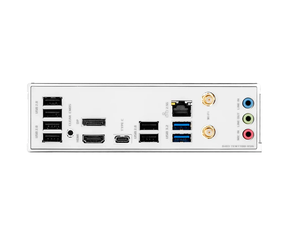 6 x USB 2.0, 2 x USB 3.2 Gen1, USB 3.2 Gen2x2 Type-C, HDMI, DisplayPort, RJ-45