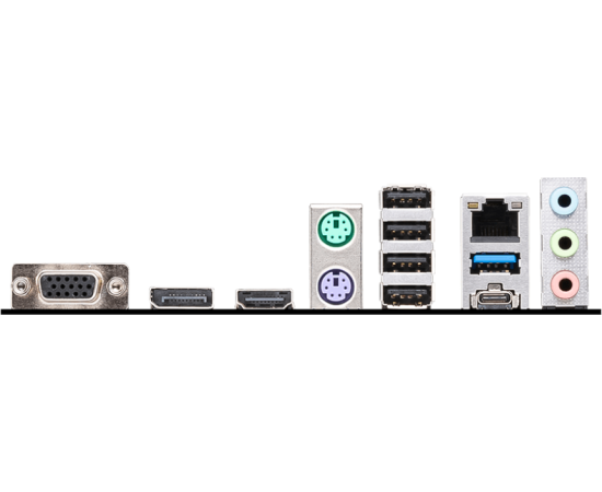 2 x PS/2, 4 x USB 2.0, USB 3.2 Gen1, USB 3.2 Gen2 Type-C, VGA, HDMI, DisplayPort, RJ-45