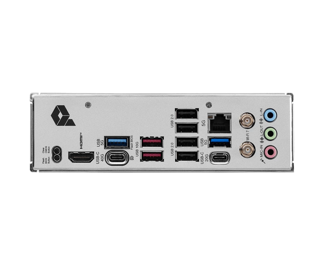 4 x USB 2.0, 2 x USB 3.2 Gen1, 2 x USB 3.2 Gen2, USB 3.2 Gen2x2 Type-C, USB 4 Type-C, HDMI, RJ-45