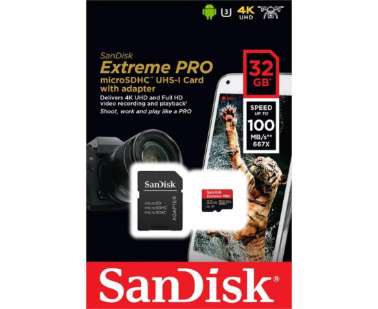 MicroSD 32GB SanDisk Class 10 Extreme Pro (100 Mb/s) + SD адаптер