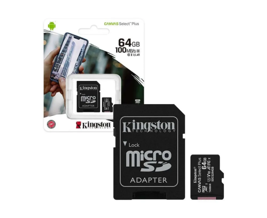 MicroSD 64GB Kingston Class 10 Canvas Select Plus A1 (100 Mb/s) + SD адаптер