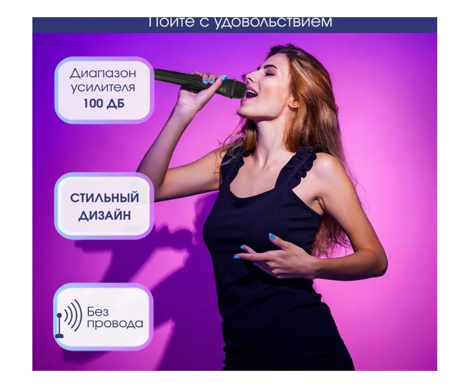 Комплектация ручной микрофон (2 шт.), приемник сигнала с микрофонов, USB кабель для зарядки аккумулятора в приемнике, поддерживающее кольцо микрофона (2 шт.), ветрозащитный колпак микрофона (2 шт.), переходник 6,3 мм в 3,5 мм, гарантийный талон, инструкция пользователя
