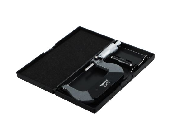 Механический микрометр применяется для высокоточных измерений различных мелких изделий и деталей с диапазоном измерений от 50 до 75 мм с шагом 0,01 мм. Имеет удобную форму скобы. Инструмент выполнен из высококачественной инструментальной стали с антикоррозийным покрытием, обладает высокой прочностью и устойчивостью к деформации. В комплекте идет пластиковый кейс для хранения и транспортировки.
