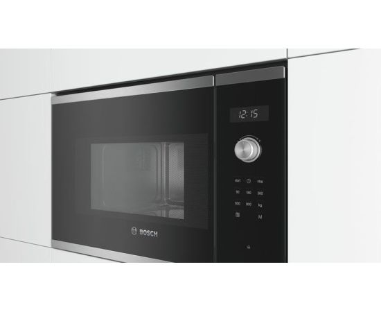 Встраиваемая микроволновая печь Bosch BFL524MS0 – современный агрегат, выполненный из нержавеющей стали, который не занимает много места, зато станет незаменимым помощником на кухне. Объем камеры, также покрытой внутри экологически безопасной нержавейкой, составляет 20 л. Выглядит эстетично, легко поддается очистке. Здесь можно подогреть любое блюдо, разморозить продукты, выбрать программу готовки – внутреннее пространство прогревается быстро и равномерно.