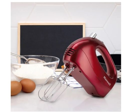 Миксер MAXWELL MW-1357 R с максимальной мощностью 300 Вт позволяет взбивать яичные белки, готовить муссы, соусы, кремы, а также идеально вымешивать тесто. Прибор имеет 5 скоростных режимов и режим TURBO, который помогает быстро справиться даже с густой массой. В комплект входят 2 венчика для взбивания и 2 насадки для теста из хромированной стали. Менять насадки очень просто — с помощью легкого нажатия на специальную кнопку.