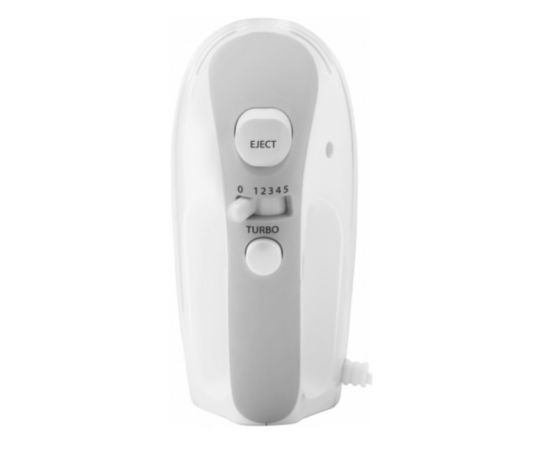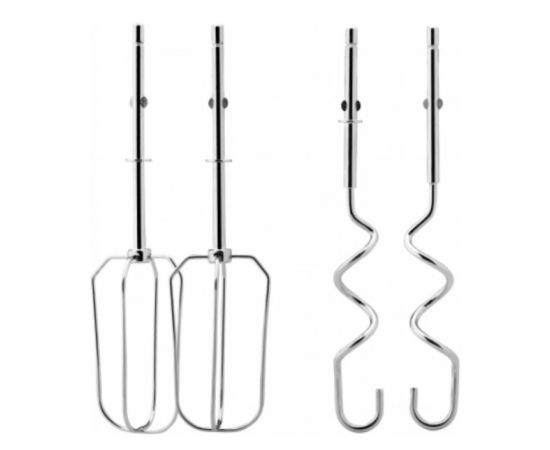 Тип:ручной Мощность:400 Вт Кол-во скоростей:5 Кол-во насадок:4 шт. Кол-во пар насадок:2 шт. Насадки:венчик для взбивания, крючки для замешивания теста Дополнительные режимы:турбо Материал корпуса:пластик Приспособление для намотки шнура:нет Цвет:белый