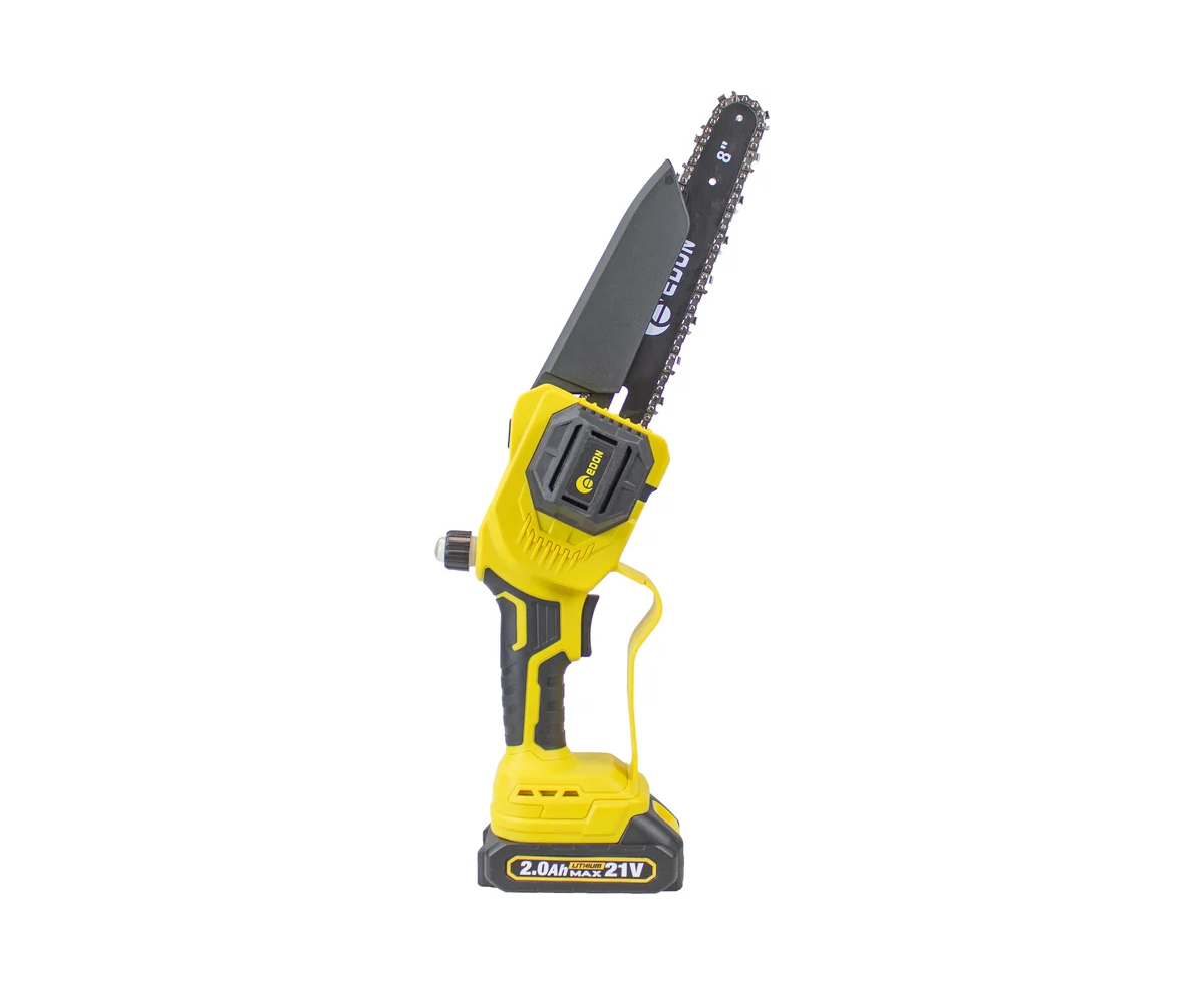 Мини-цепная пила аккумуляторная бесщеточная EDON Super NS-21/8BL 35531 предназначена для распила дерева, фанеры, ДСП. Использование мини-цепной пилы по назначению предполагает соблюдение инструкций по эксплуатации, а также необходимое техническое обслуживание. Инструмент предназначен для бытового применения. Преимущество бесщеточного двигателя: большая износостойкость инструмента. Отсутствие щеток снижает пожароопасность инструмента. Бесщеточный двигатель может в считанные секунды развить максимальную скорость за счет своего строения. В работе не подвержен перегреву.