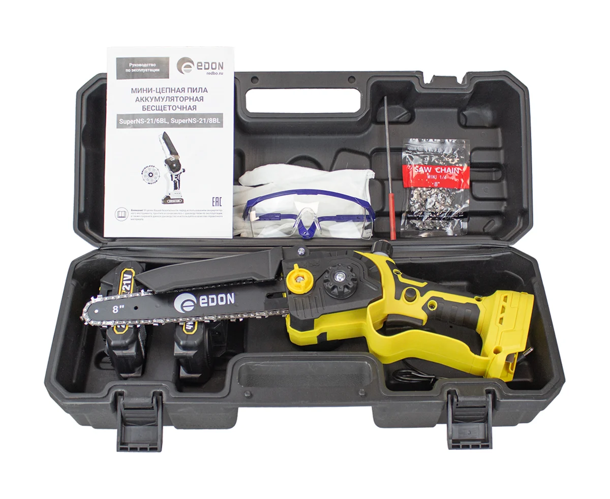 Мини-цепная пила EDON SuperNS-21/8BL (35531) 2АКБ+ЗУ